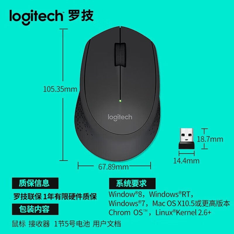 罗技M280无线鼠标便携办公家用电脑游戏USB接收器电池耐用滑鼠小