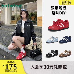 爆款 新款 运动休闲鞋 薄底赛车鞋 热风红色德训鞋 新年女鞋 2026年春季