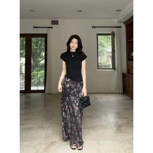显瘦上衣花色木耳边半身裙 夏季 郭九九呢 桑蚕丝羊毛简约短袖