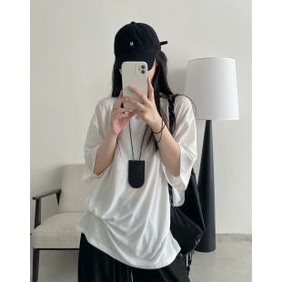 大T恤衫 短袖 上衣女夏设计感 糯糯奶昔&纯色慵懒宽松圆领中袖 sun柚