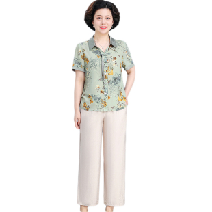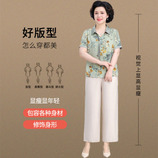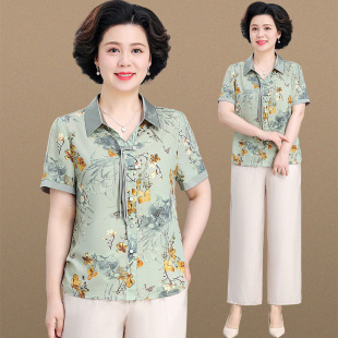 休闲套装 雪纺小衫 女贵夫人洋气高端上衣两件套 短袖 中老年妈妈夏季