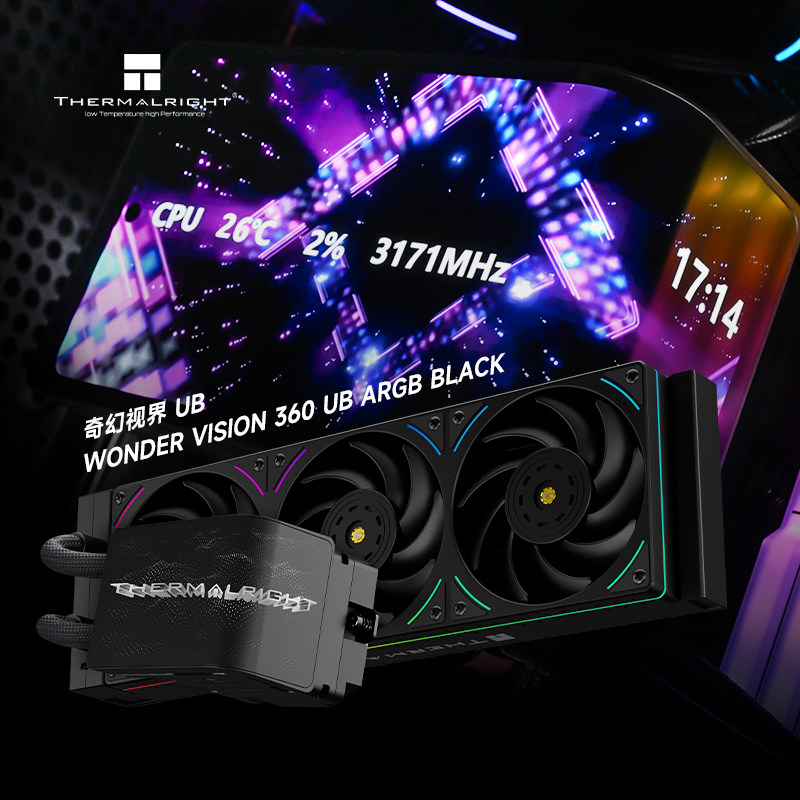 ARGB黑色曲面屏水冷散热器360 360奇幻视界UB 利民WONDER VISION