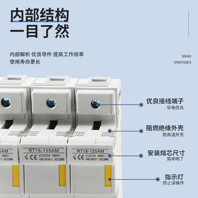 125A 卡轨熔断器底座 100A 125AM 80A R017底座 RT18