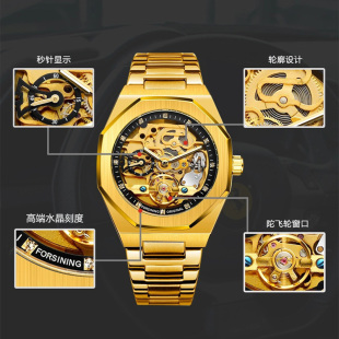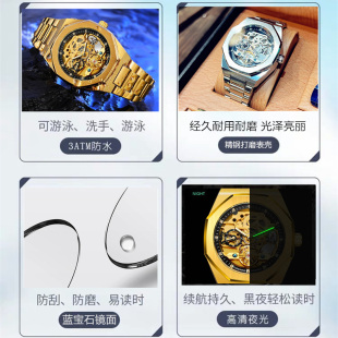 皇家镂空手表男全自动机械表复古商务经典 潮牌方形表 橡树防水时尚