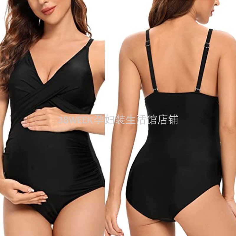 游泳衣纯色遮肚 性感拼接胖mm大码 孕妇专业泳衣时尚 三角连体泳装