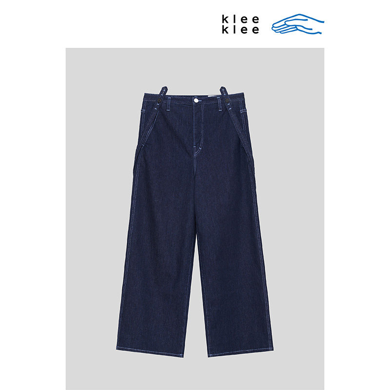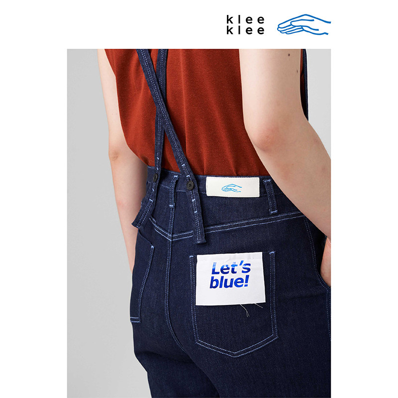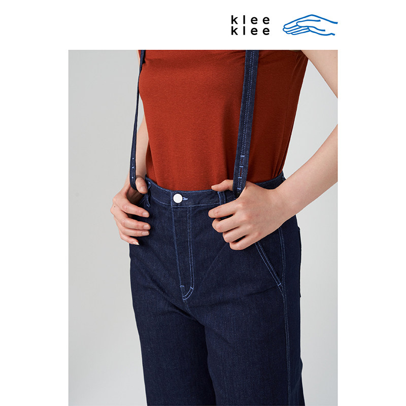 活泼俏皮减龄休闲风直筒裤 薄弹牛仔背带裤 klee夏女装 klee
