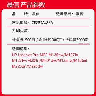M225dw M201n墨盒M201d M225dn复印一体机CF283A碳粉HP83A M125nw打印机粉盒M127fw 适用惠普M125a硒鼓M127fn