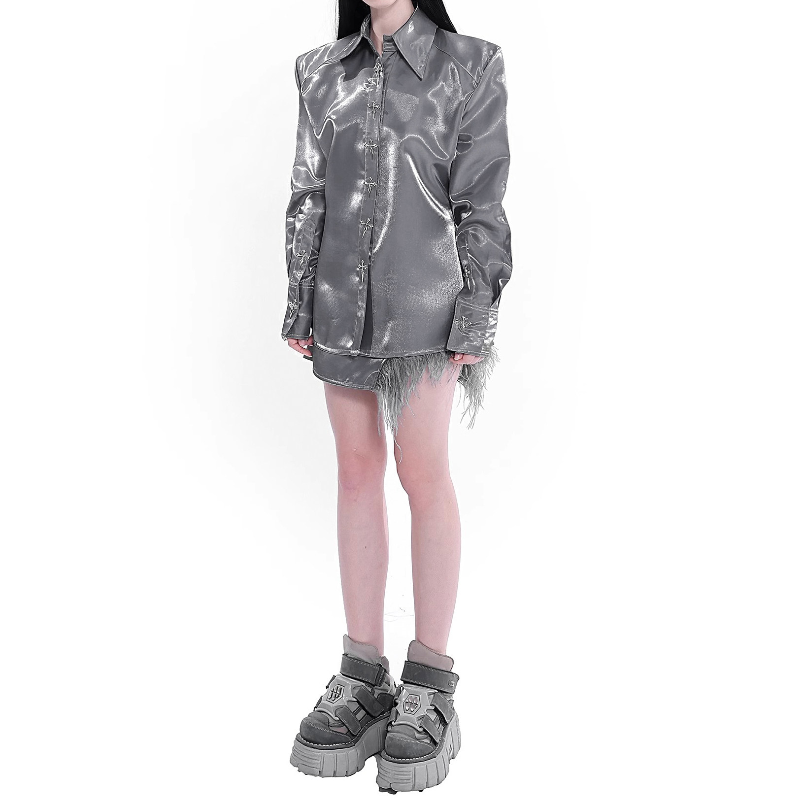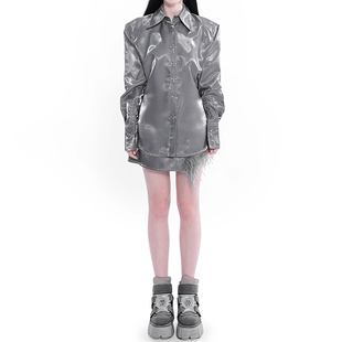 极简高级感法式 时尚 长领衬衫 肩垫长袖 宽松上衣 薄款 LACANEDE