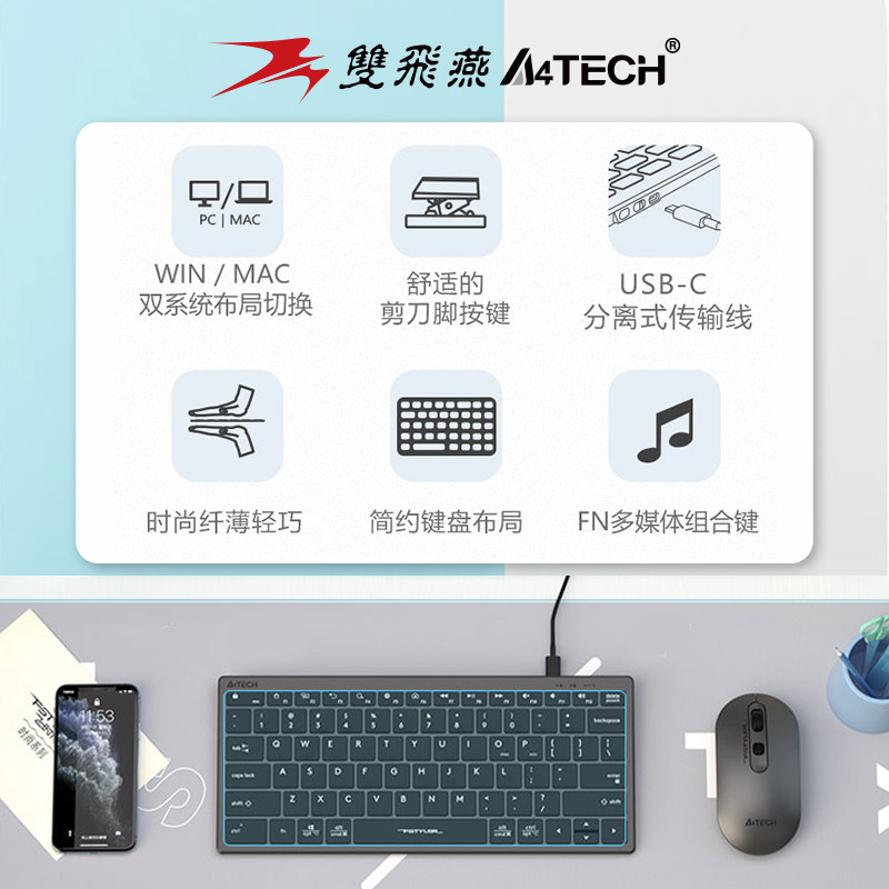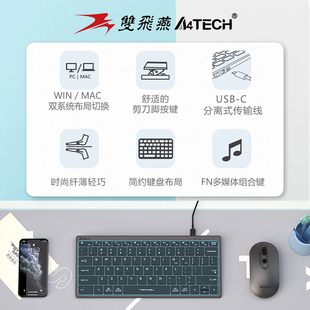 双飞燕官方FX51轻音键盘有线笔记本台式 电脑办公超薄便携飞时代