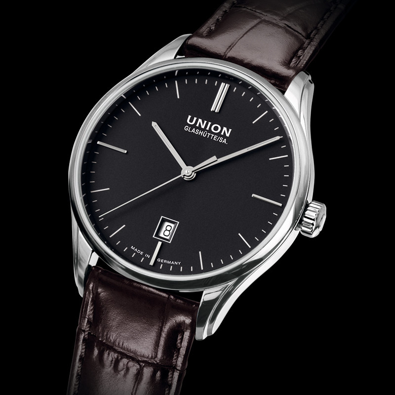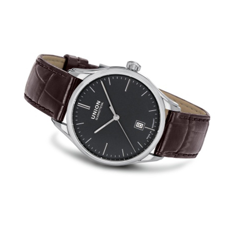 情侣腕表 Union格拉苏蒂宇联德国手表维罗黑盘日历机械男士 7折
