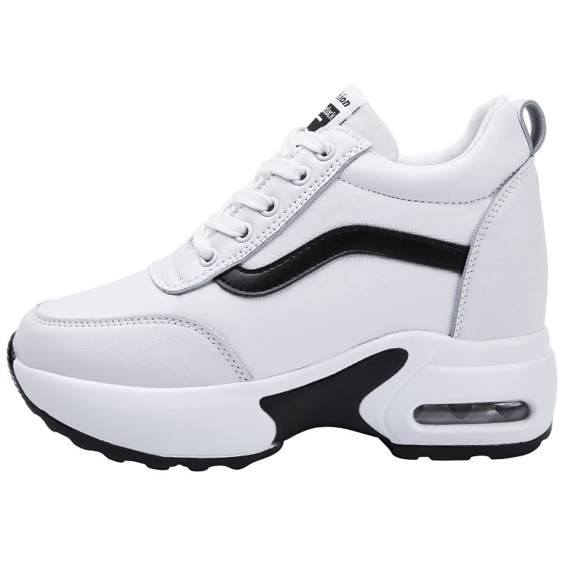 运动小白鞋 真皮内增高厚底坡跟休闲百搭松糕小皮鞋 女 韩版 2025新款