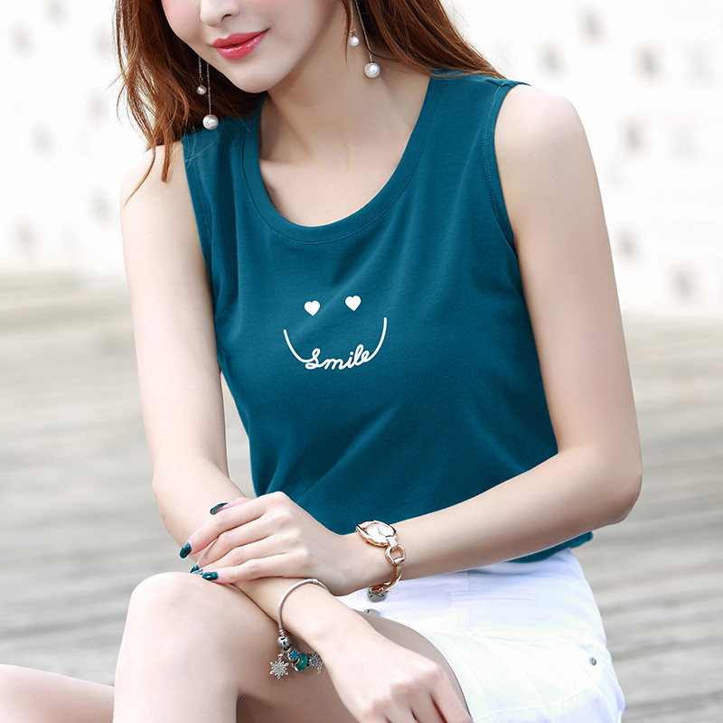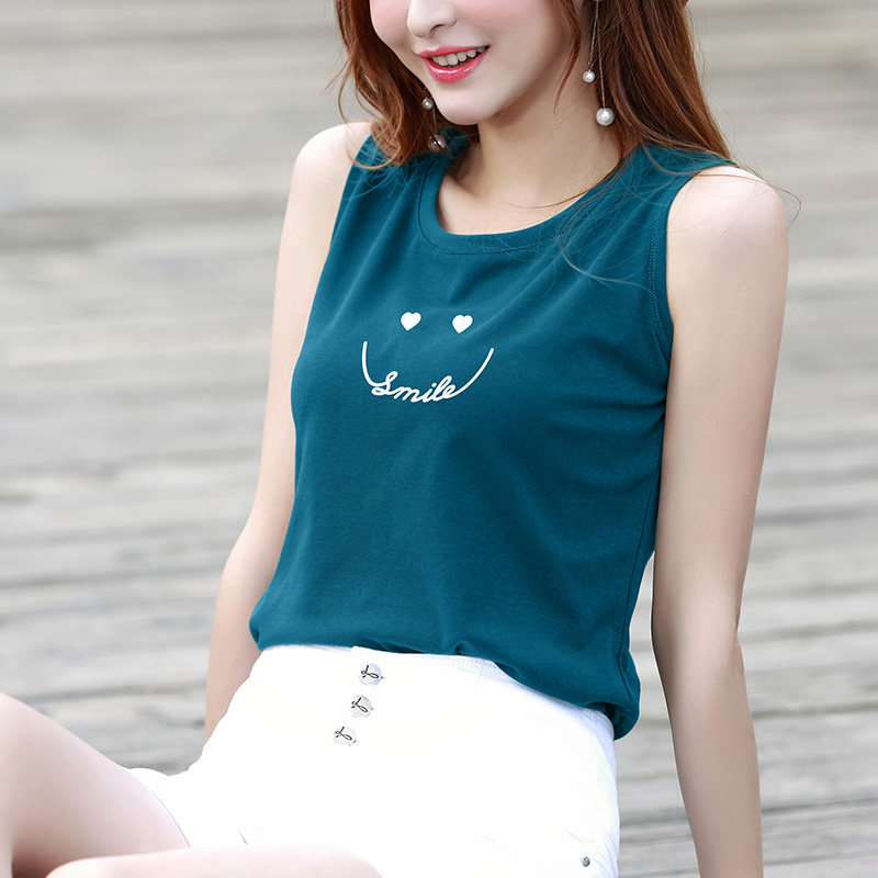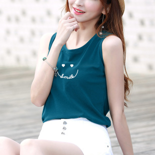 普蓝色超火小背心女外穿夏设计感印花吊带上衣内搭打底衫 t恤 无袖