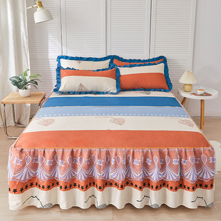 A类全棉床裙单件加厚夹棉公主风纯水洗棉防滑床罩带裙边四季 通用