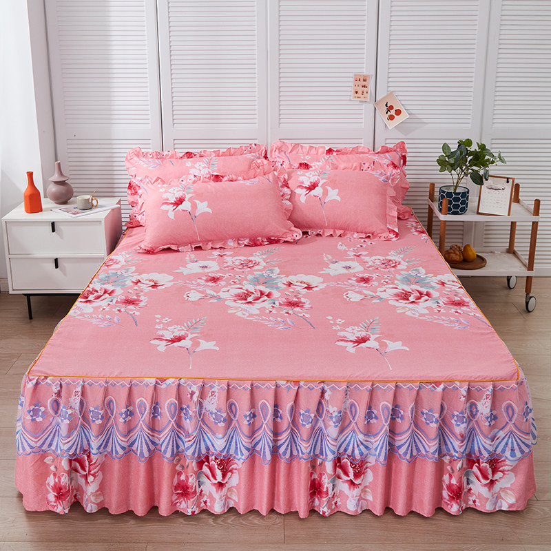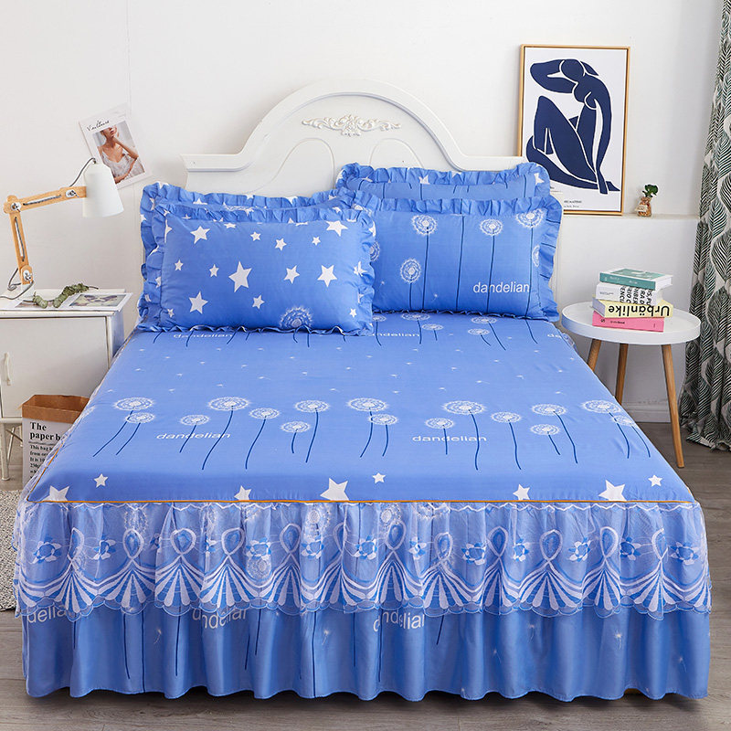 全棉床裙夹棉床笠单件纯棉床盖防尘床单床垫防滑三件套四季 通用