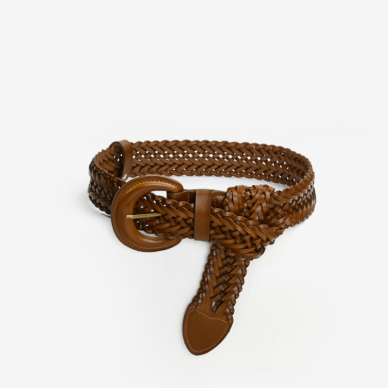 高级感时尚 免打孔编织真皮腰带女百搭超软皮带束腰配连衣裙外套潮