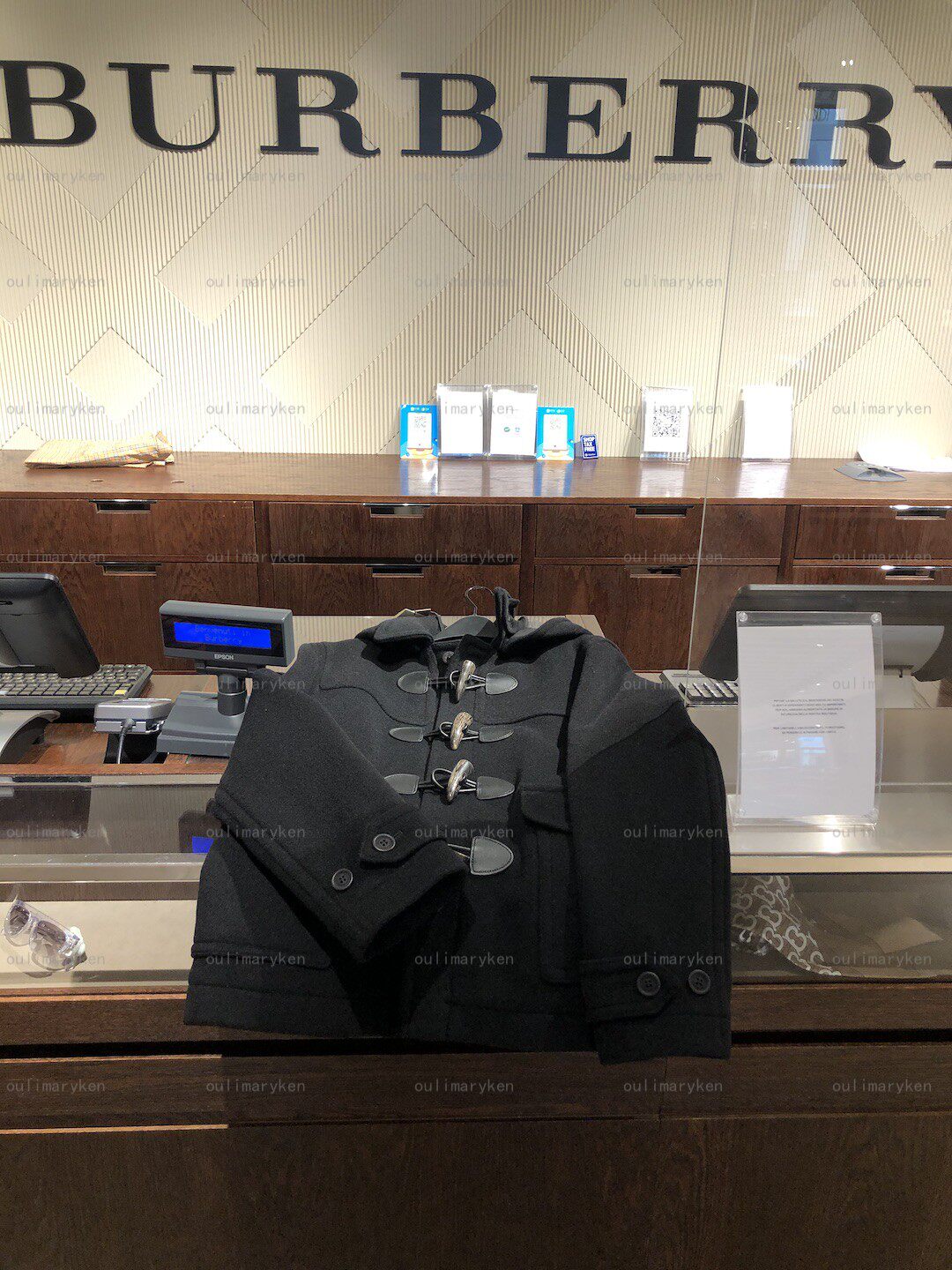 经典 中长款 牛角毛呢大衣 意大利奥莱 50码 男士 黑色 BURBERRY
