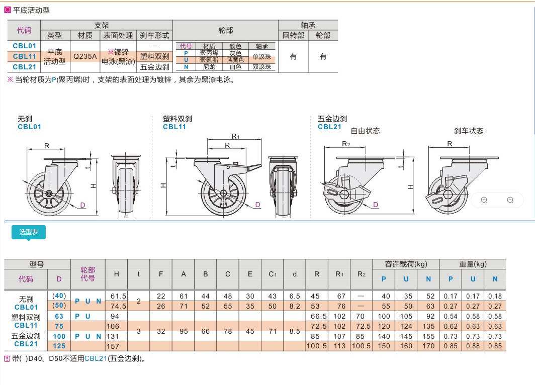 d40 CBK CDK脚轮CDL01 d50 d75 CBL d100 d63 d125