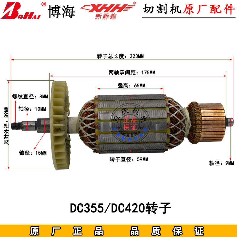 博海355石材切割机转子定子新辉煌420墙壁切割机14寸16寸原厂配件