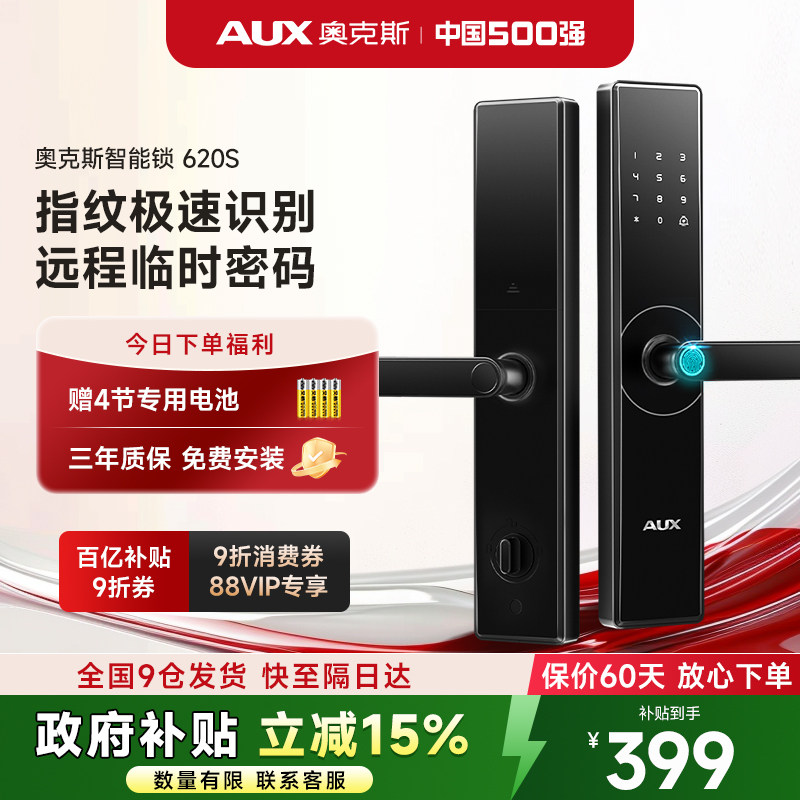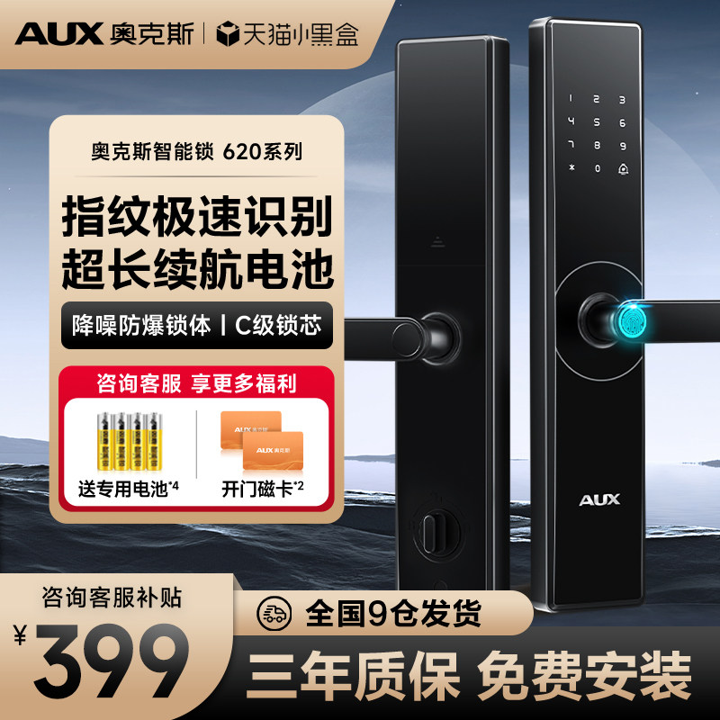 奥克斯指纹锁家用防盗门智能锁密码 锁入户大门木门电子锁门锁620
