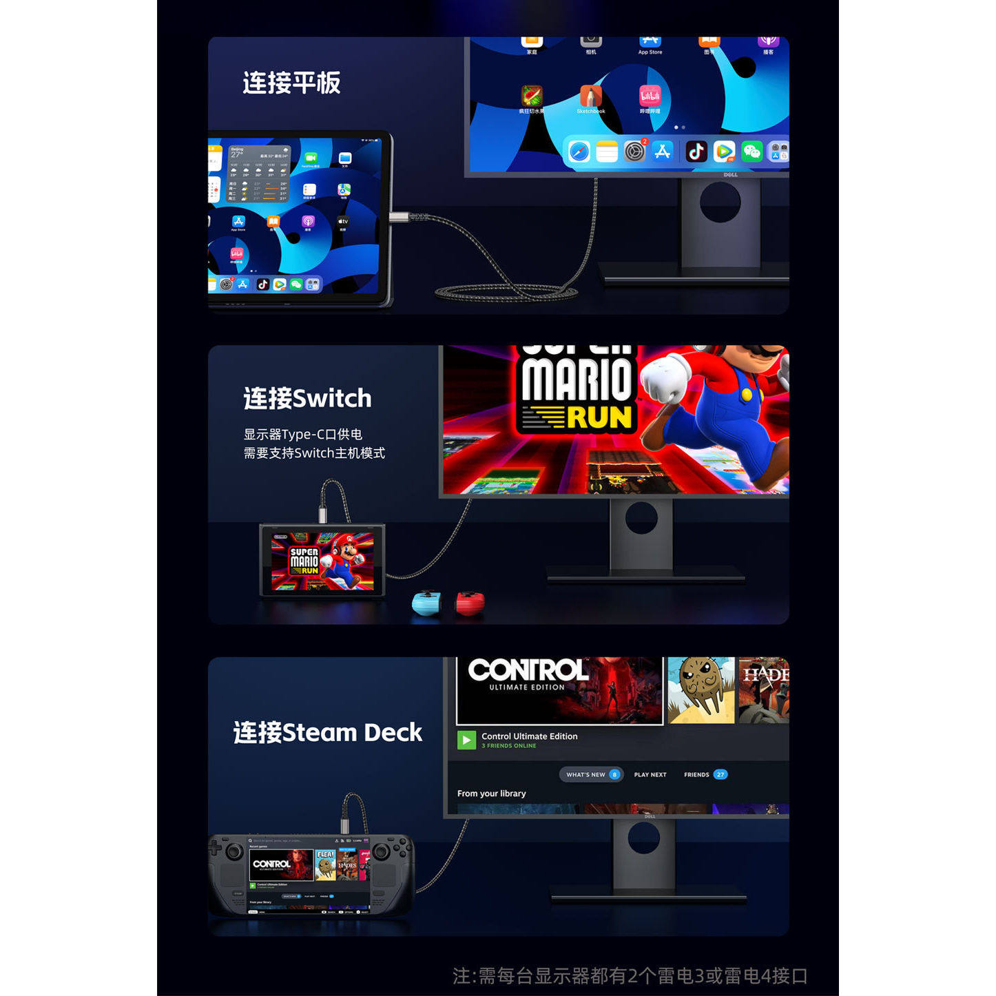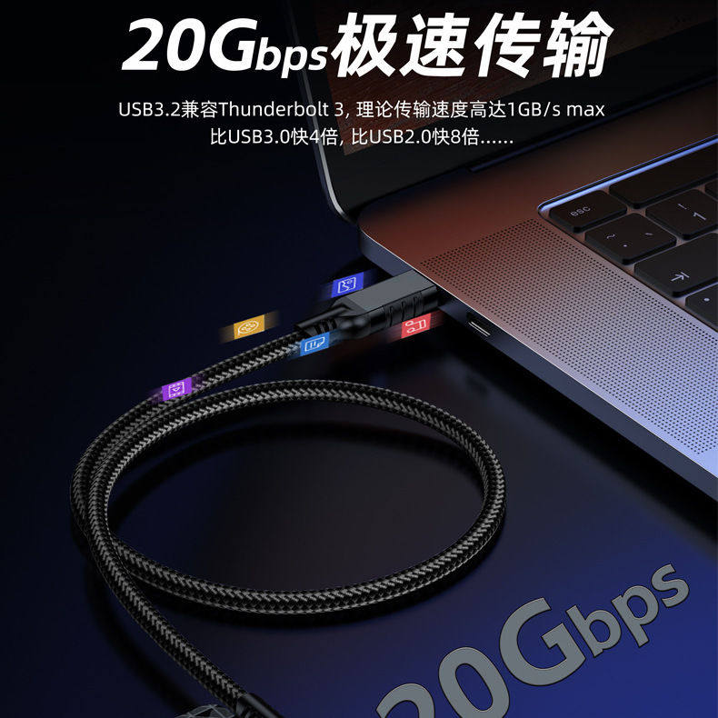 c全功能线 4K投屏Gen2充电USB3.2硬盘连接线100W快充双20Gbps传输数据线Type 双弯头Type C公对公视音频线