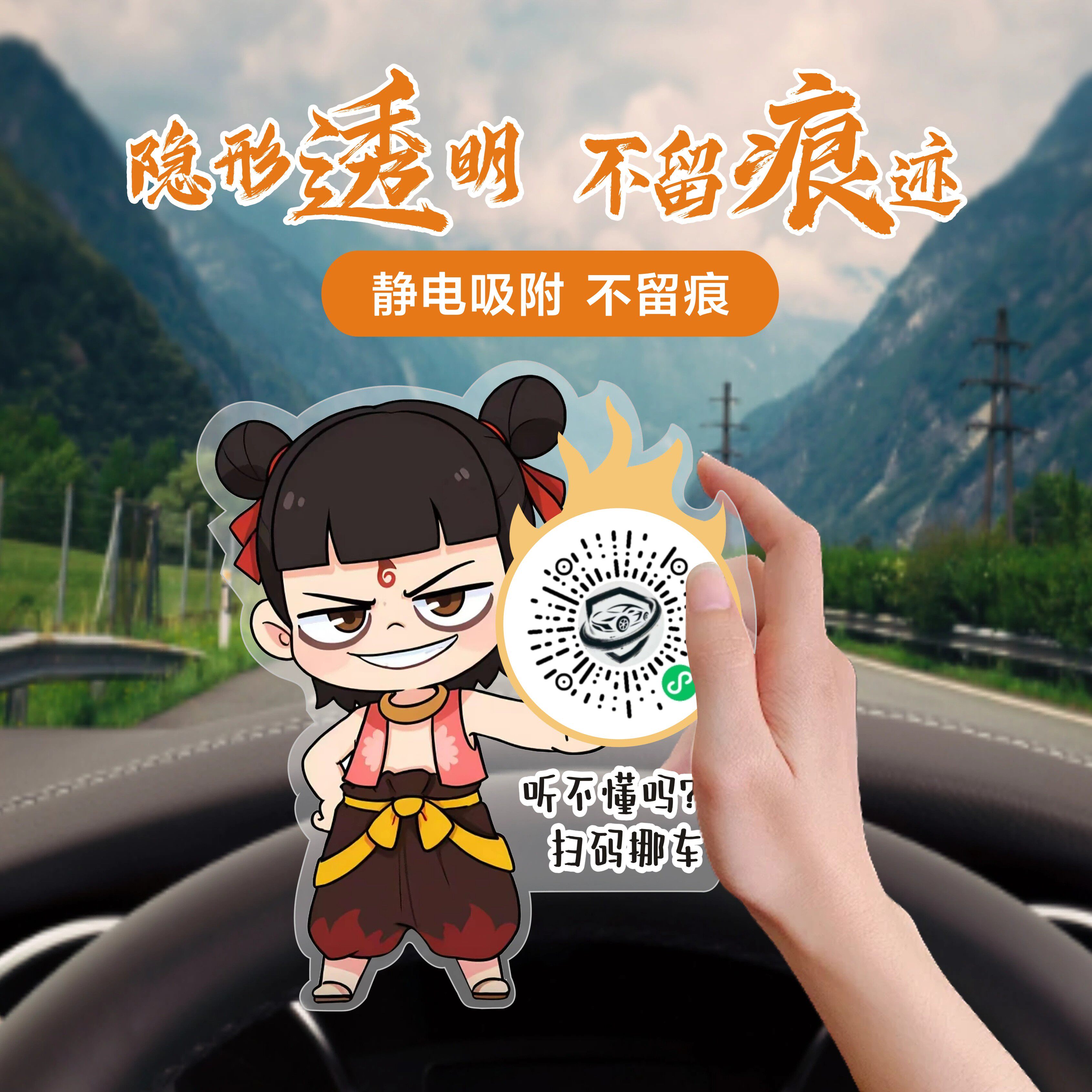 牌车载静电贴新款 挪车汽车号码 车用隐私 临时停车牌二维码 创意扫码