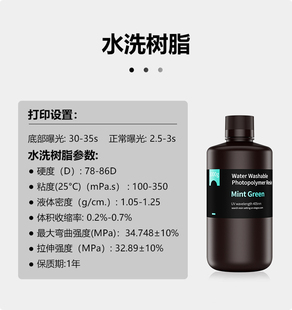 通用光敏树脂水洗树脂可水洗免酒精500克 405nm波长 1000克 爱乐酷光固化3D打印机耗材高精度材料LCD ELEGOO