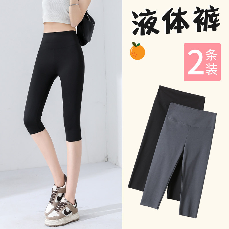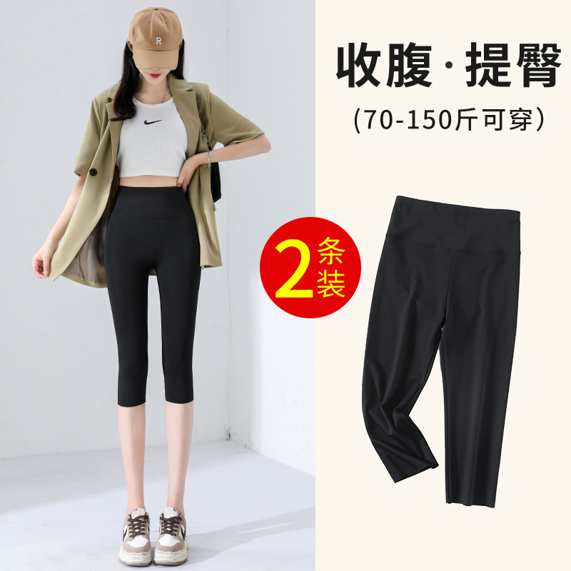 瑜伽提臀显瘦打底裤 鲨鱼裤 高腰收腹七分紧身大码 薄款 女外穿夏季