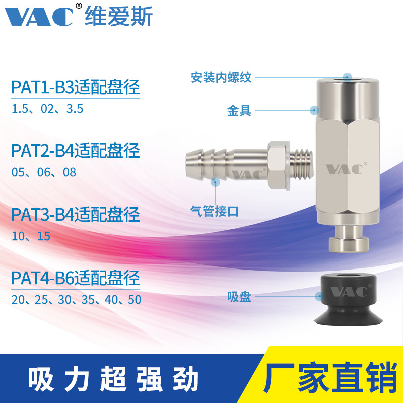 50黑白吸盘 工业机械手真空吸盘侧进气金具PAT 包邮