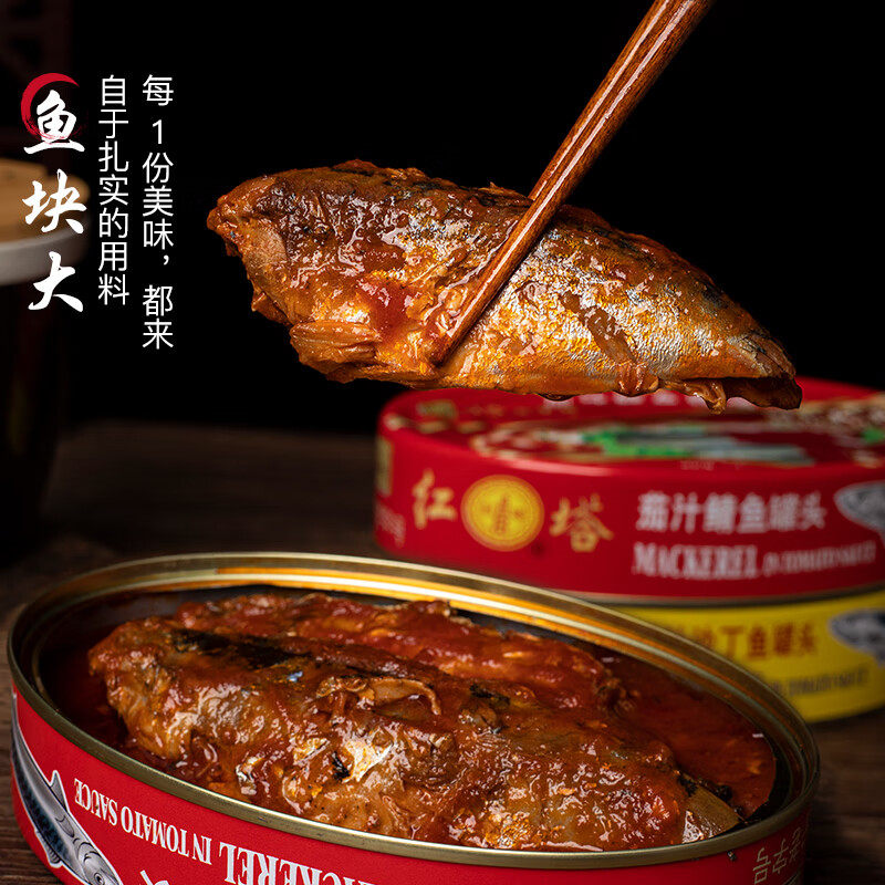 大连红塔茄汁鲭鱼罐头397g5罐拌饭菜即食番茄汁鱼罐头储备食品