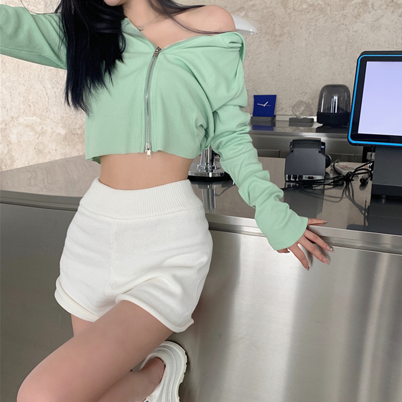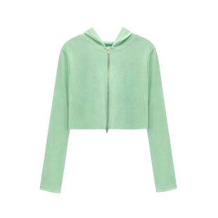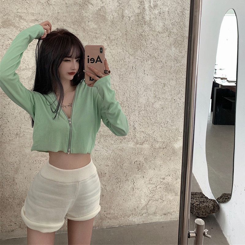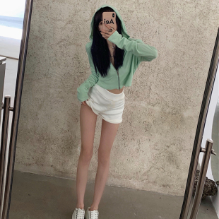 小上衣 高腰辣妹露脐独特漂亮短款 绿色长袖 t恤女jazz爵士拉链开衫
