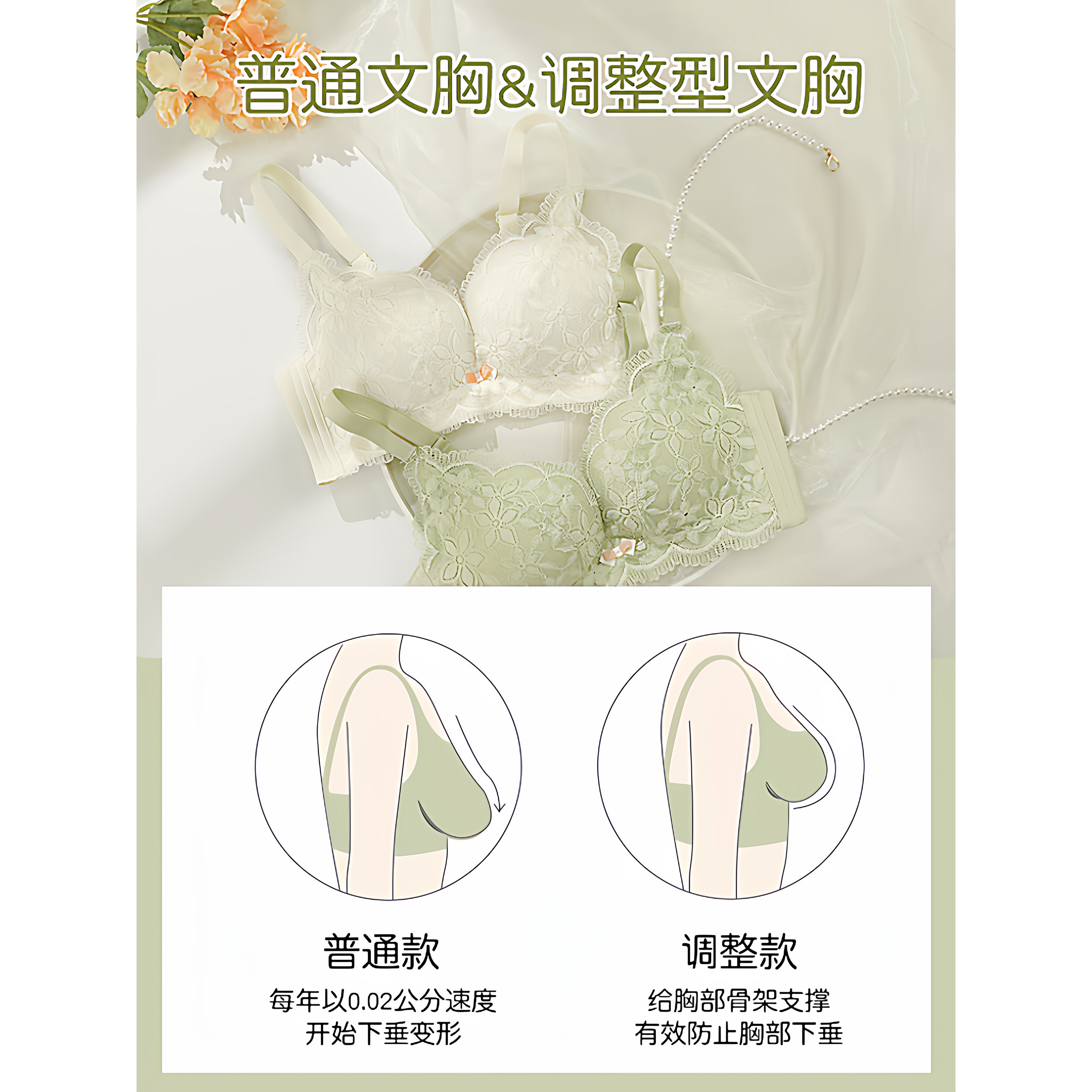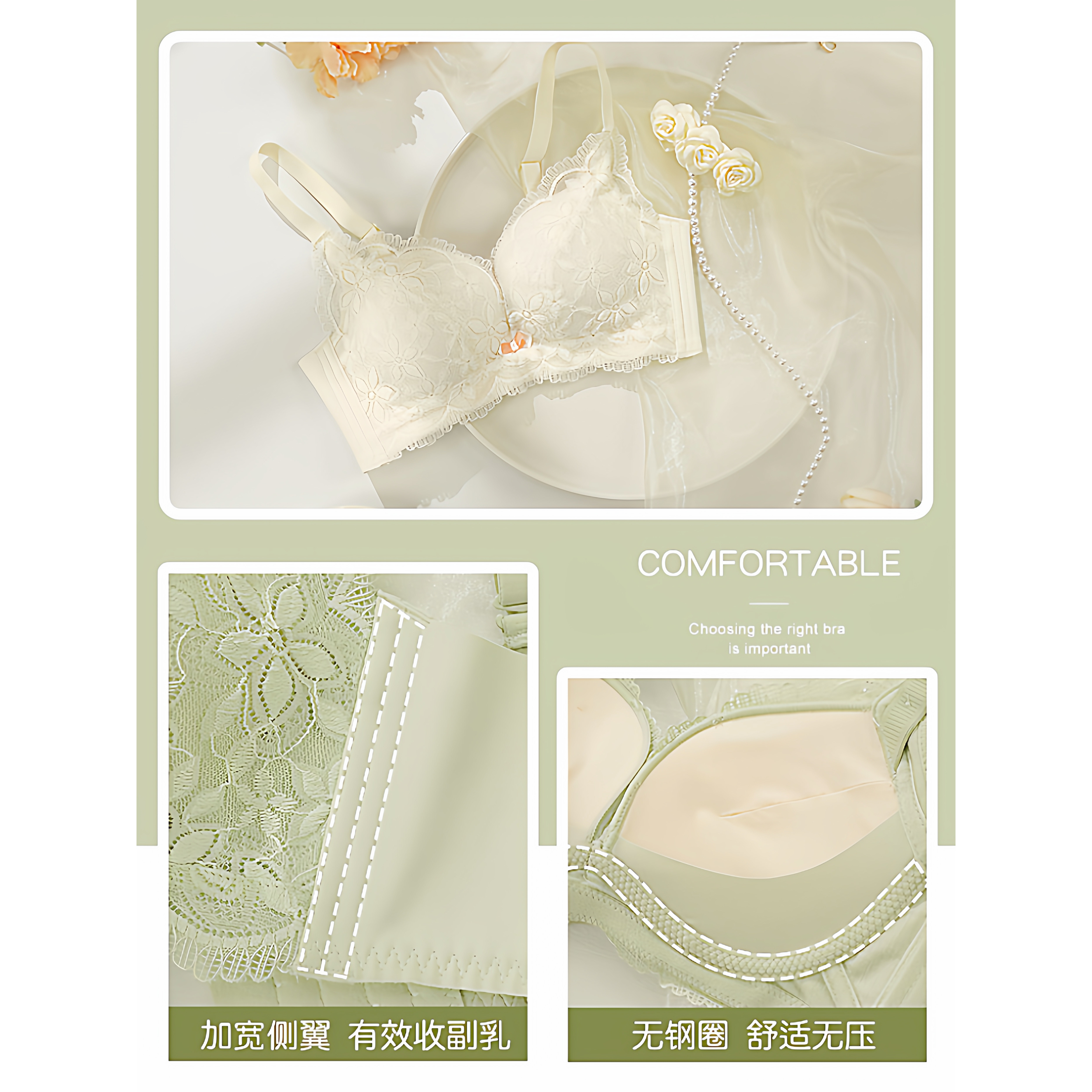 小胸聚拢无钢圈收副乳防下垂纯欲少女蕾丝内衣夏季 性感 文胸套装