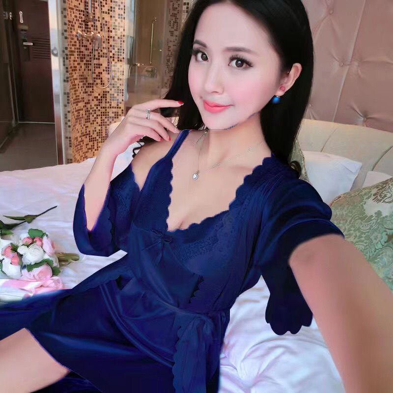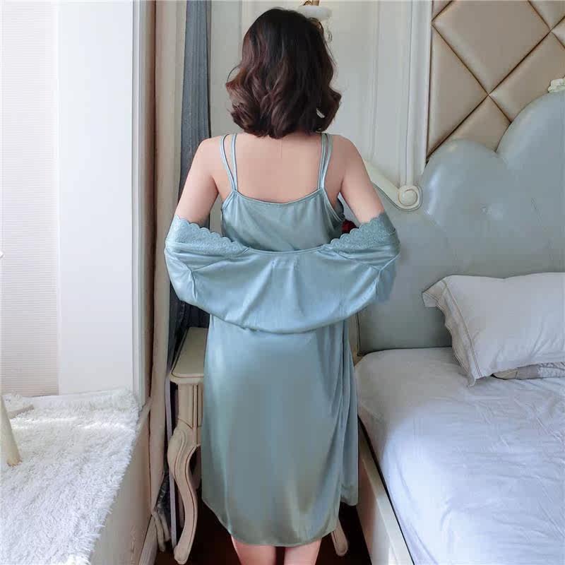 睡衣女冰丝性感二件套睡裙吊带真冰丝睡裙睡袍两件套装 女夏睡衣