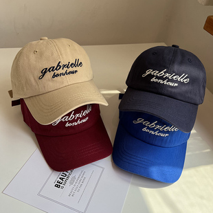 韩版 日系简约刺绣字母鸭舌帽女宽檐显脸小软顶遮阳棒球帽街头防晒