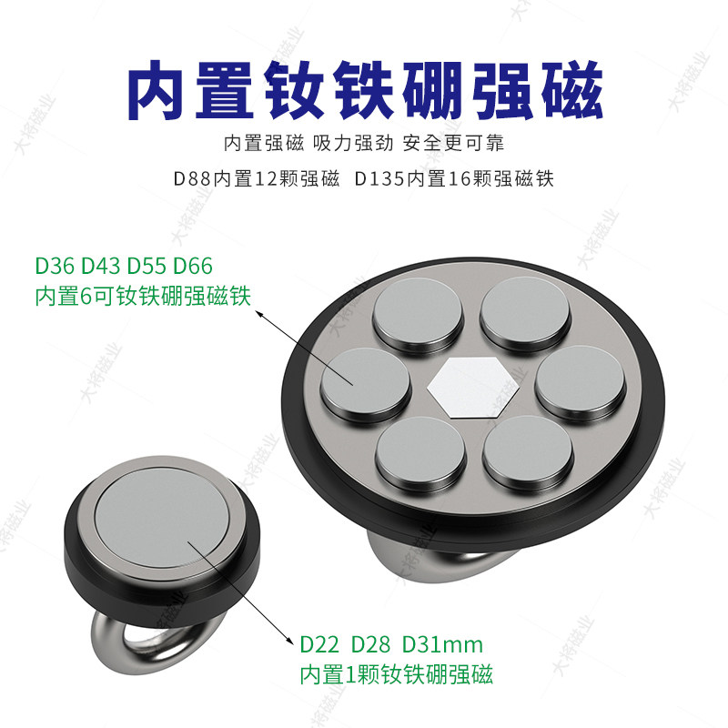 D22 可对吸天幕帐篷包胶磁铁强磁挂钩 D43mm天幕磁铁包胶强磁吊环