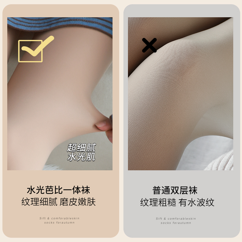 水光袜单层一体光腿神器女秋冬裸感超自然肤色加绒丝袜打底连裤 袜