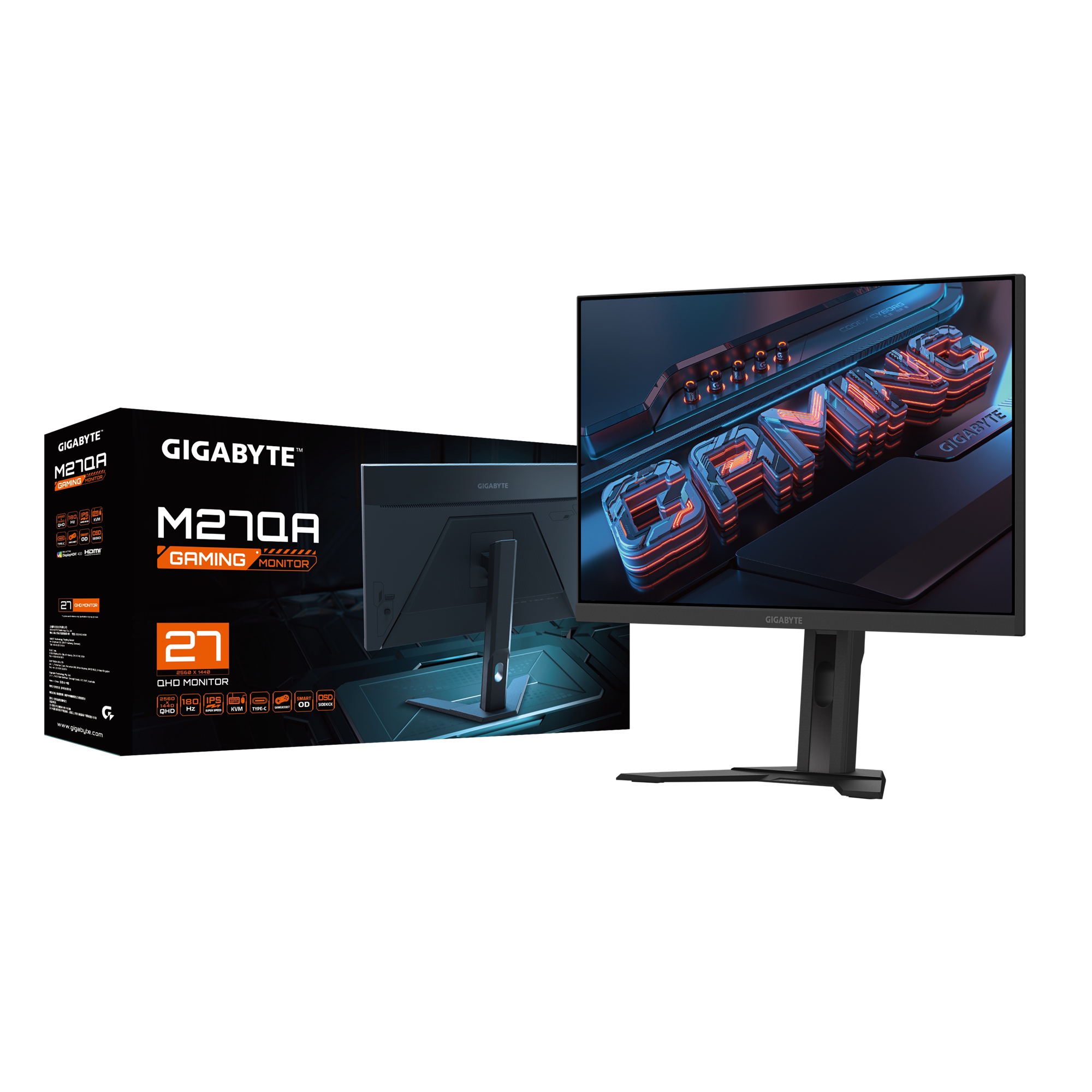 搭配QHD180Hz新款 1ms响应 电竞游戏显示器 27寸ips屏2K 技嘉M27QA