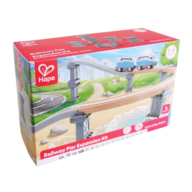 Hape桥墩包6个装 可叠加塑料支撑架桥桩柱子木质火车轨道玩具配件