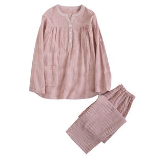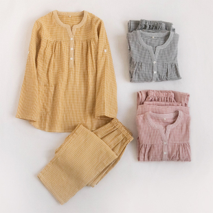 家居服套 套头衬衫 春秋日系外穿全棉双层纱布纯棉女士睡衣长袖 短袖