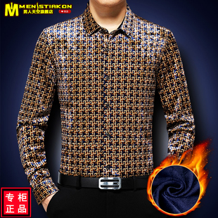 衬衫 外贸秋冬季 男士 免烫抗皱羊毛长袖 男 加绒加厚保暖衬衣商务正装