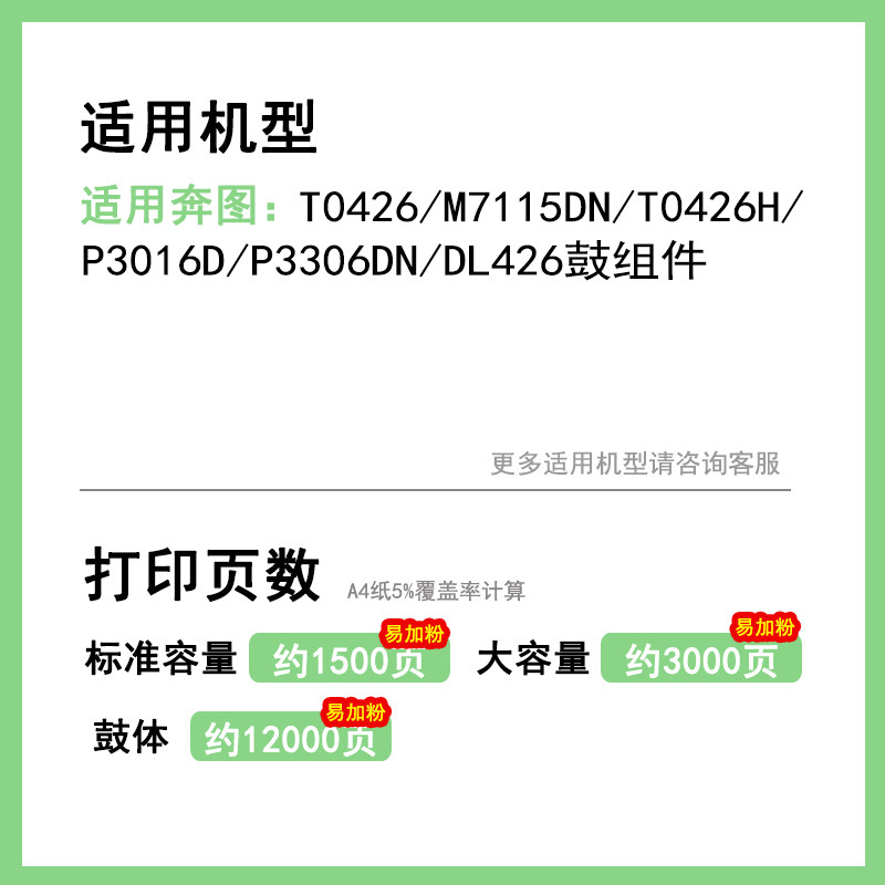 英联 P3306DN墨粉盒感光鼓DL426鼓架鼓组件 适用奔图TO426粉盒M7115DN粉盒易加粉TO426H碳粉盒P3016D