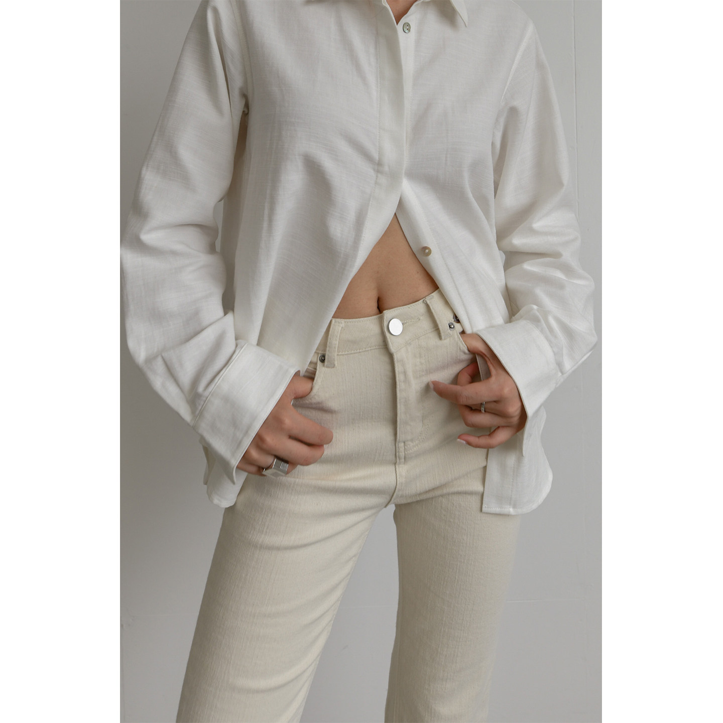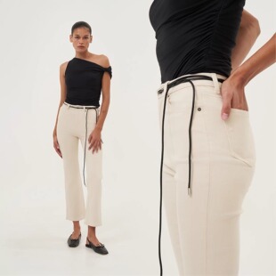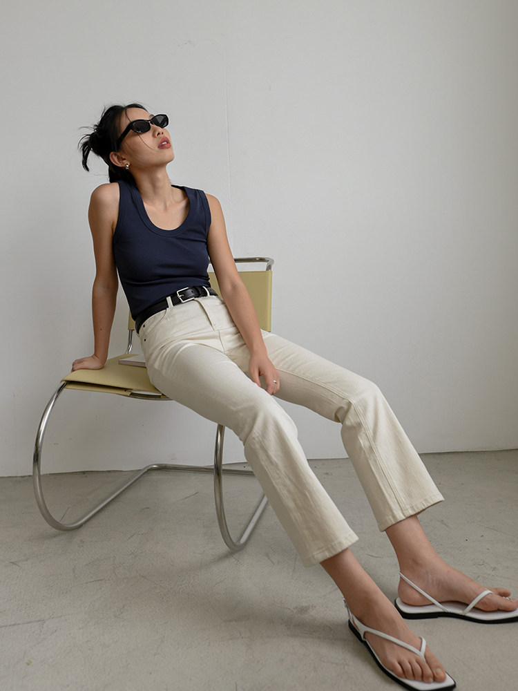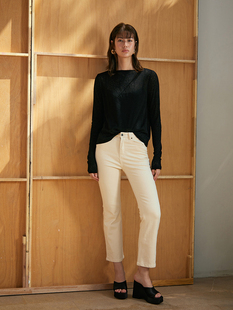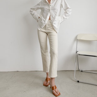 微喇叭裤 OTHERSTORE 女百搭修身 复古米白色九分牛仔裤 子 白日美人