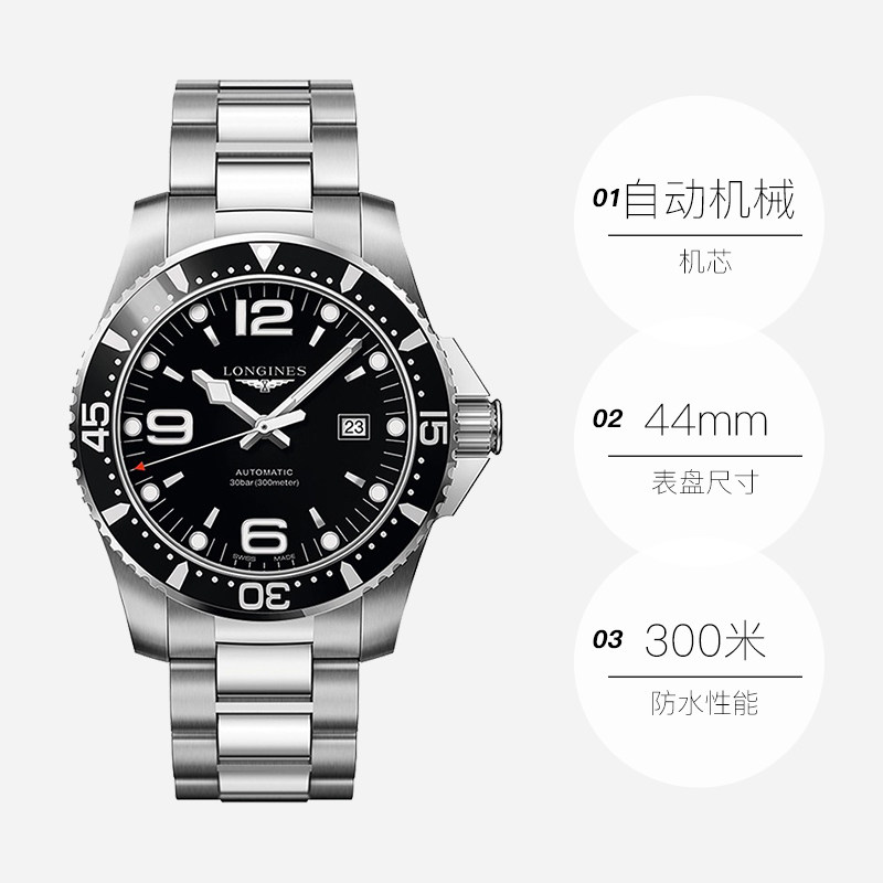 Longines 瑞表 康卡斯 自动机械男表44mm 浪琴 夜光 礼物 自营
