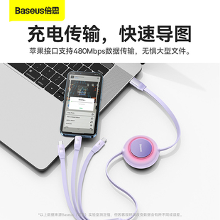 倍思三合一数据线typec充电线PD100w快充线一拖三适用苹果17手机iphone16promax电脑华为66w伸缩多头车载定制