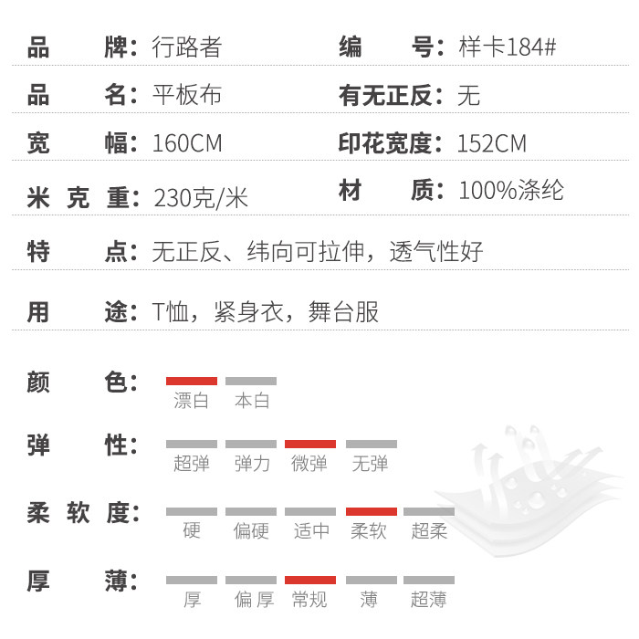 样卡184 72F平板布面料速干T恤里布料 涤纶针织高品质75D