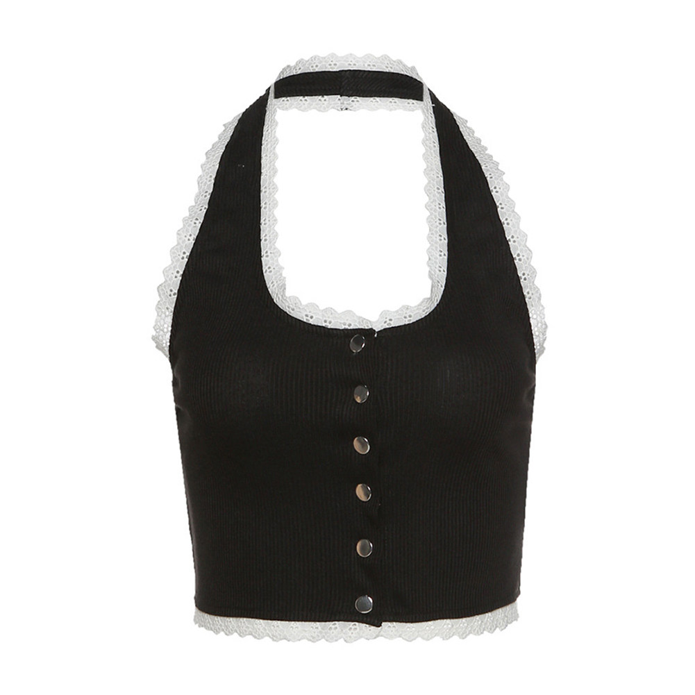 Lace Fit Open Back 剪裁蕾丝露背上衣 Solid Top夏纯色修身 Slim