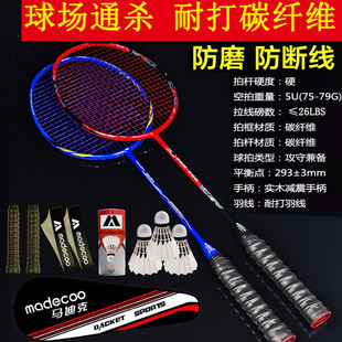 耐打耐用型 双拍全碳素碳纤维羽毛球拍超轻攻守兼备套装 正品 2支装
