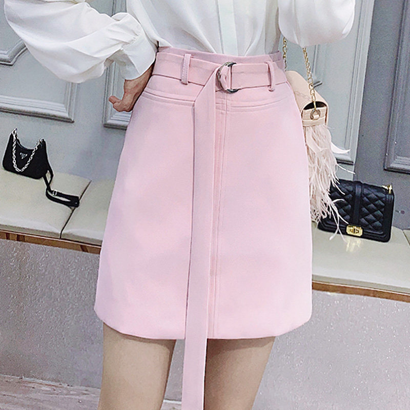 酷伽潮流夏季 送腰带 高腰纯色包臀裙ins风舒适直筒半身裙9001
