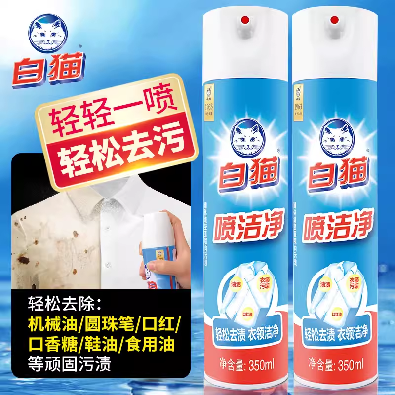 白猫喷洁净600ml衣领净强力去污油渍干洗店亮白衬袖 口油污乳化剂