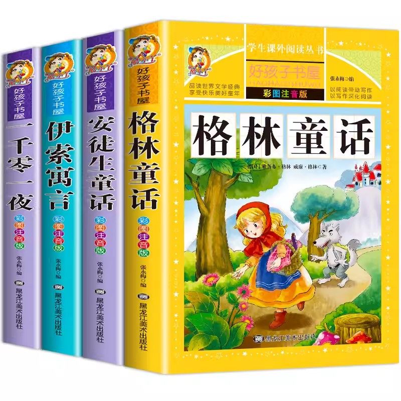 当当网正版 伊索寓言一千零一夜一年级二三阅读课外书必读儿童拼音好孩子书屋 童话故事书全套4册安徒生童话格林童话全集彩图注音版