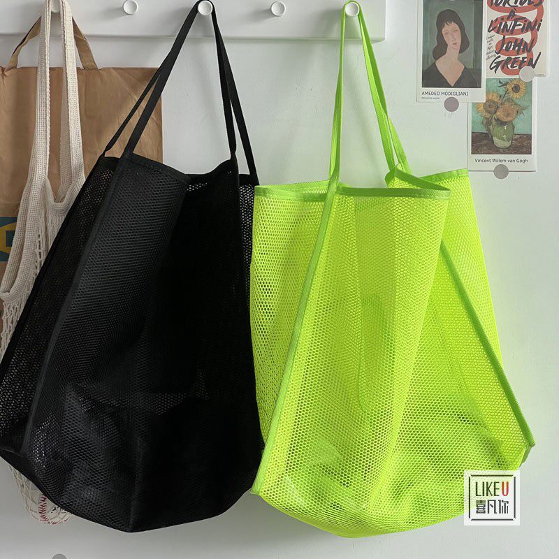 2025巴厘岛沙滩ins风透明网纱托特单肩挎时尚 轻便潮流购物女包包